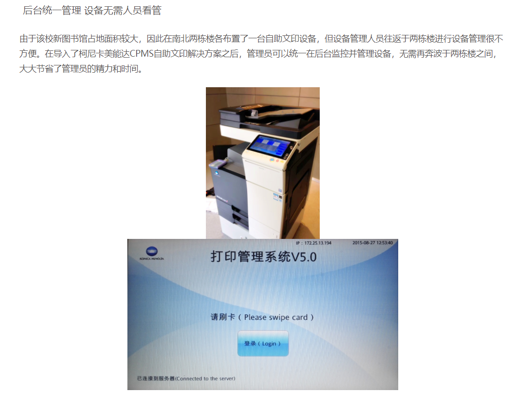 深度兼容智慧校园一卡通完成自助文印