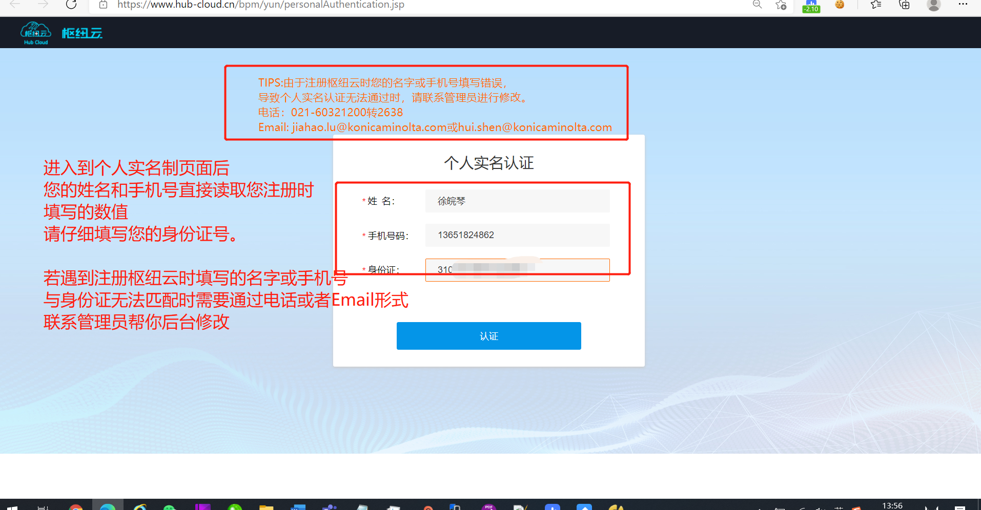 并且在个人实名制页面请仔细填写您的身份证号码。