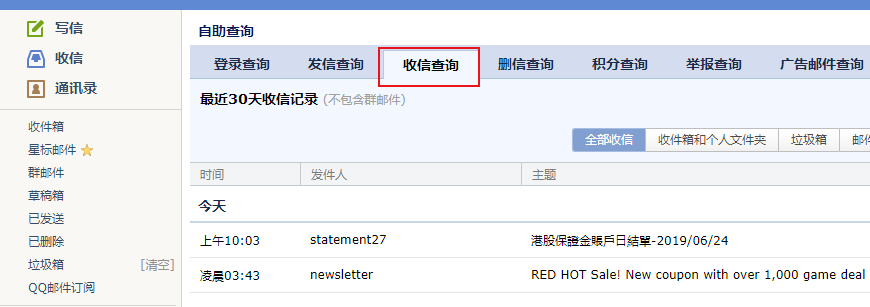 解决办法一:被QQ邮箱策略拦截的,a). 可以通过垃圾邮件找回(见下图)